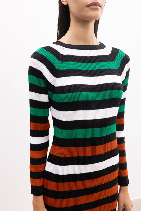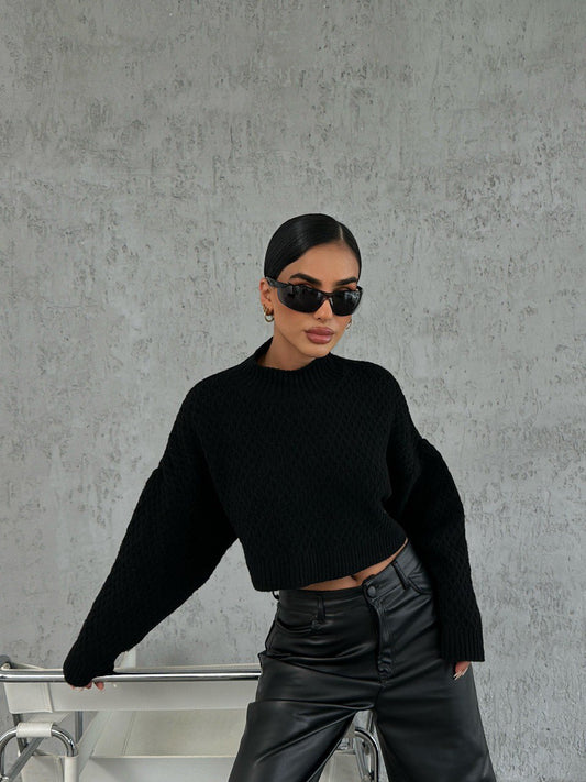 Square Neck Ribbed Long Sleeve Blouse - Black