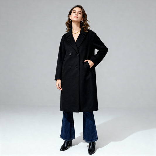 Long Sleeve V-Cut Blouse - Accessorized - Black
