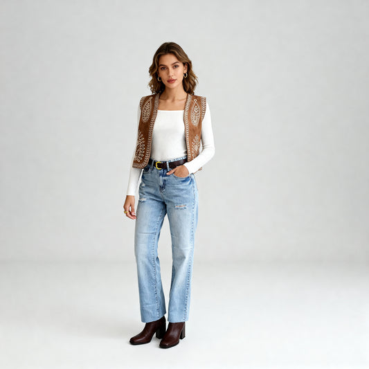 Sleeveless V-Cut Blouse - Accessorized - Black